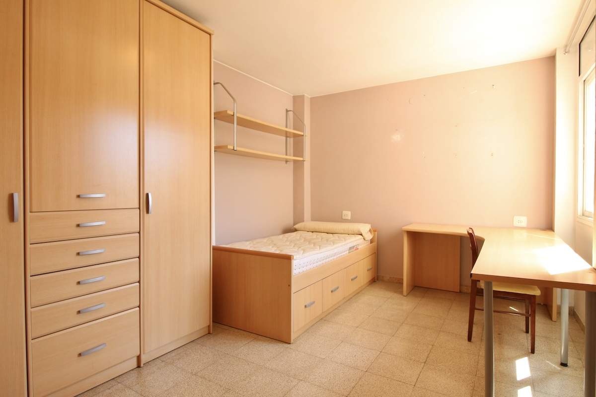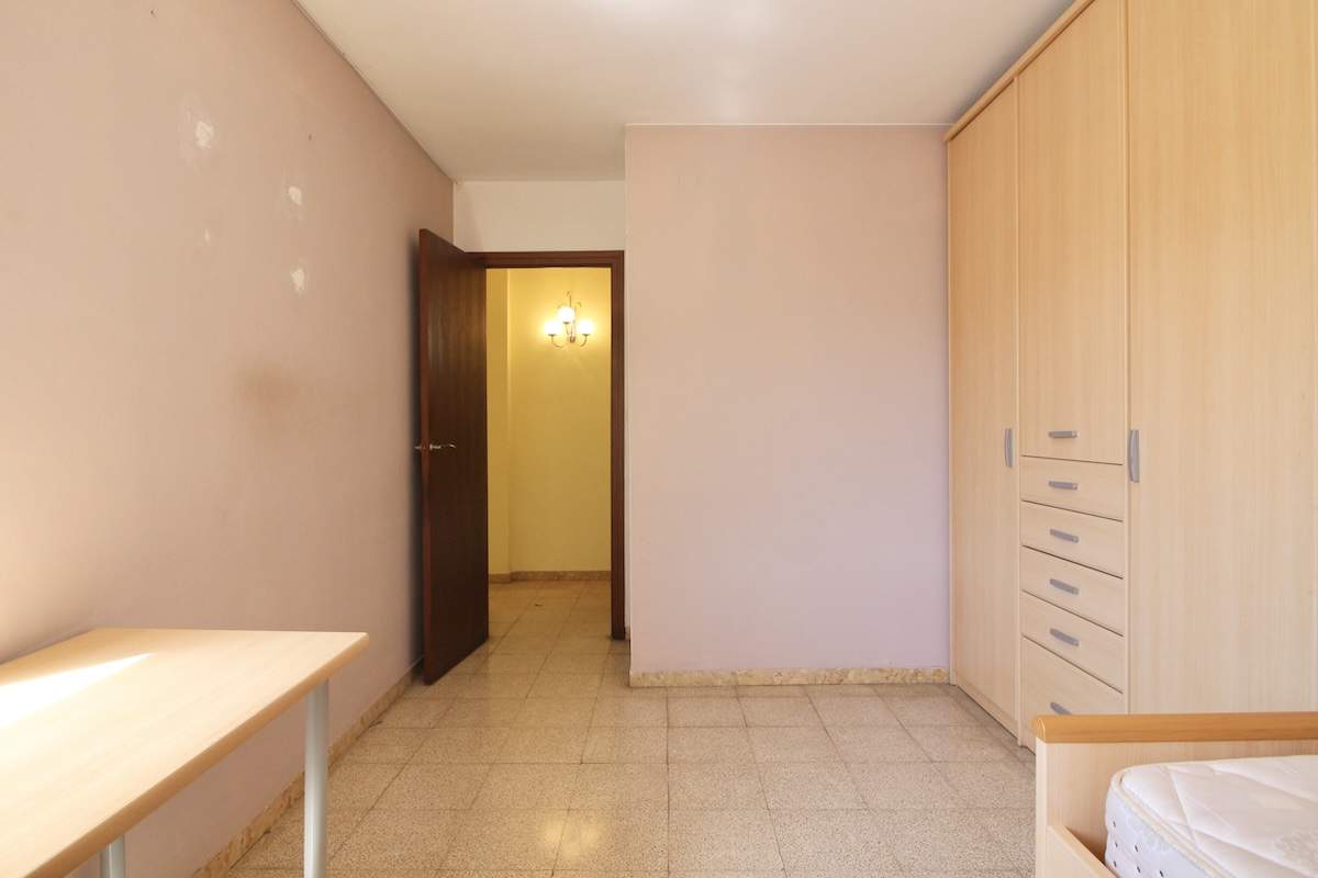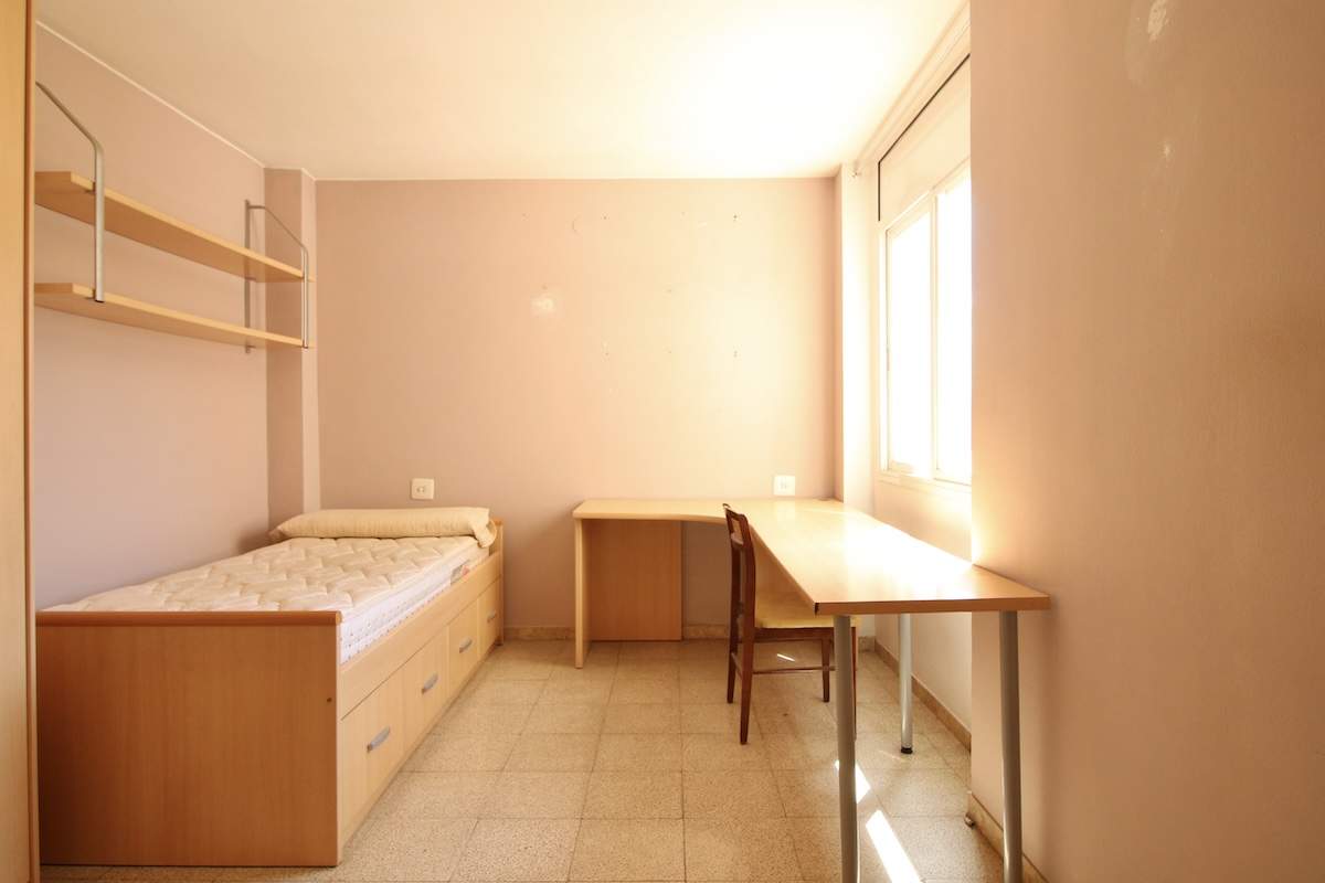 Al entrar, un recibidor organiza de forma clara la vivienda. A mano derecha encontramos una primera habitación individual, con ventana al lavadero exterior, un espacio práctico y bien ventilado.