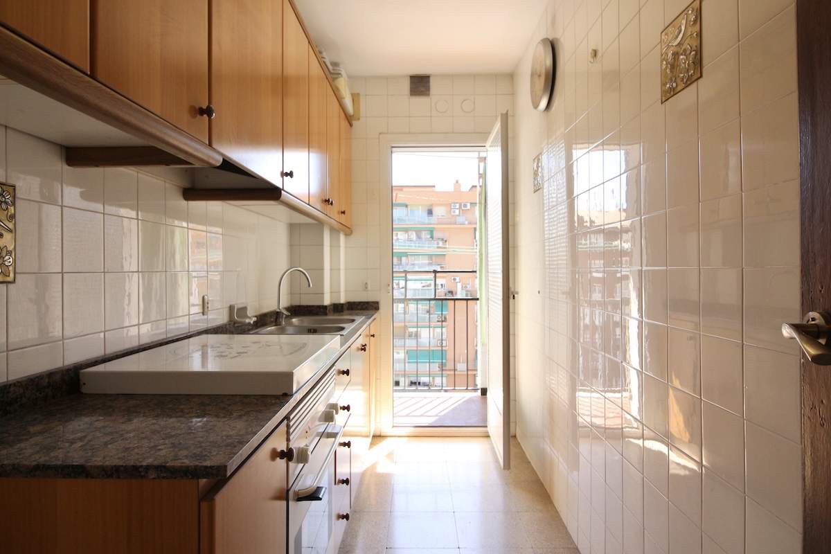 A continuación, también a la derecha, se sitúa la cocina, alargada y funcional, que conecta directamente con este mismo lavadero exterior, un espacio práctico y bien ventilado.