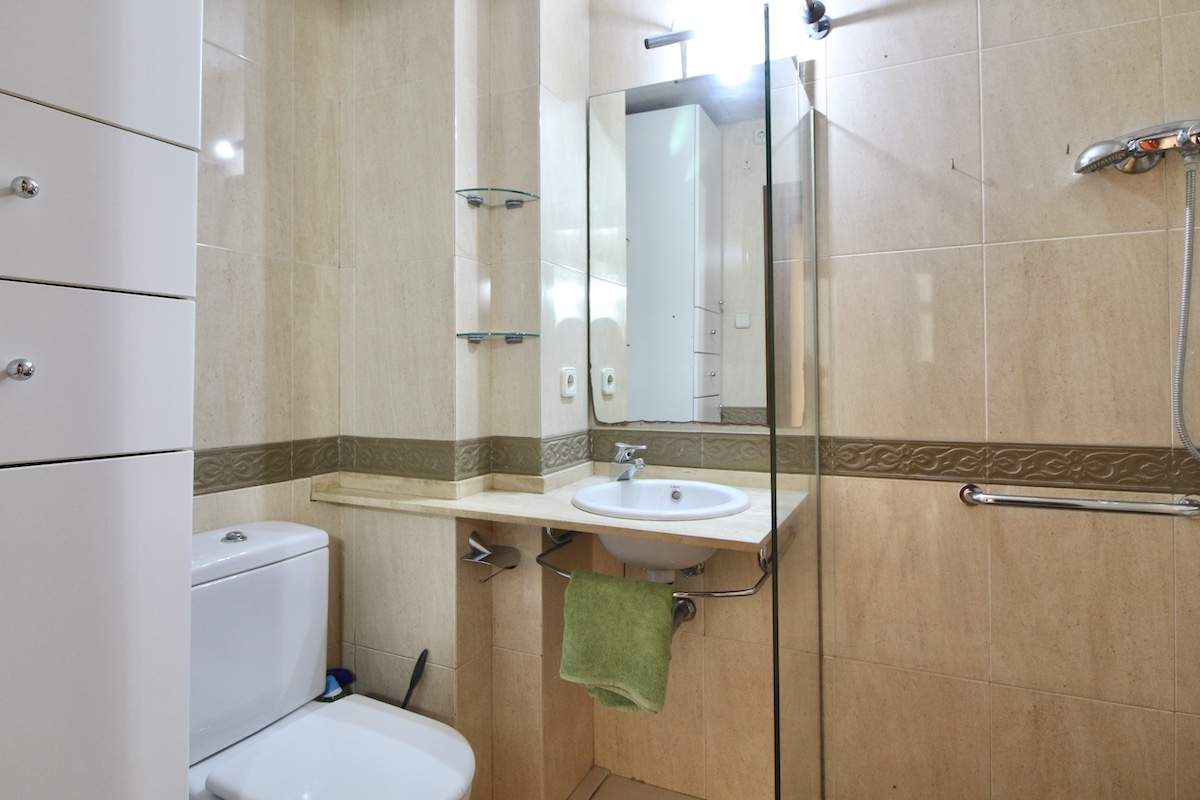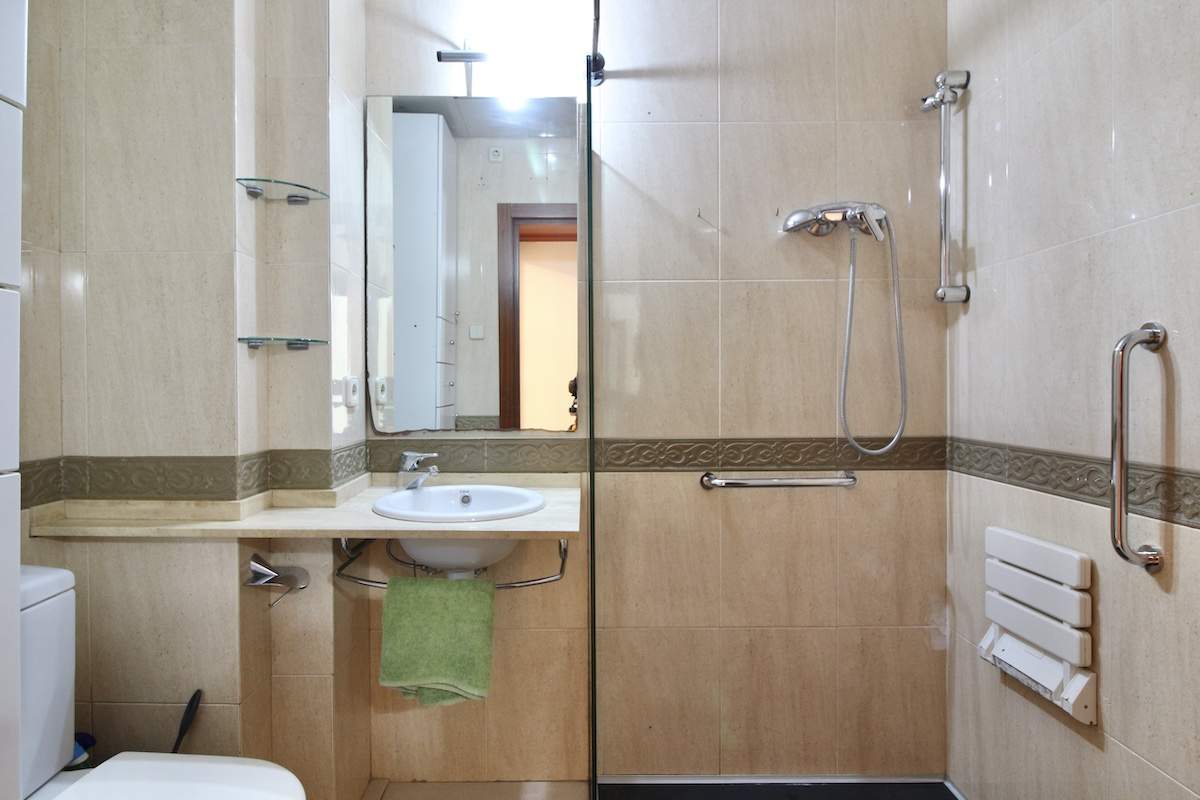 Completa la distribución un baño cuadrado, actualmente con un espacio de ducha muy amplio.
