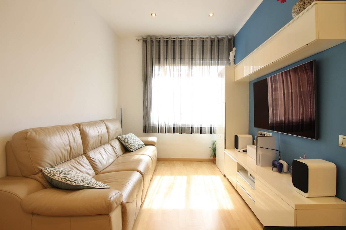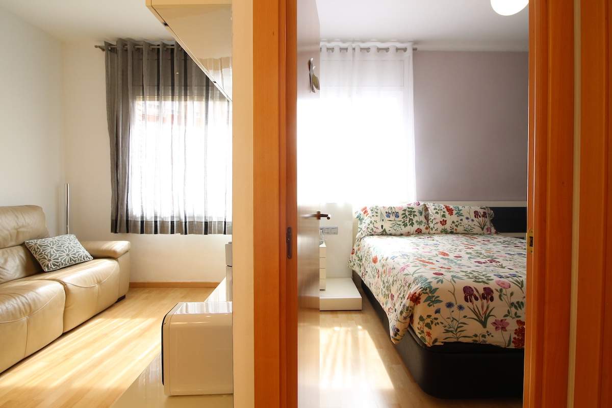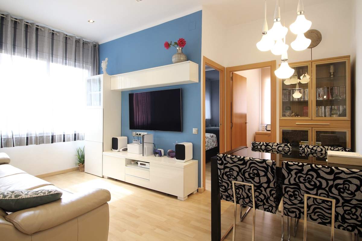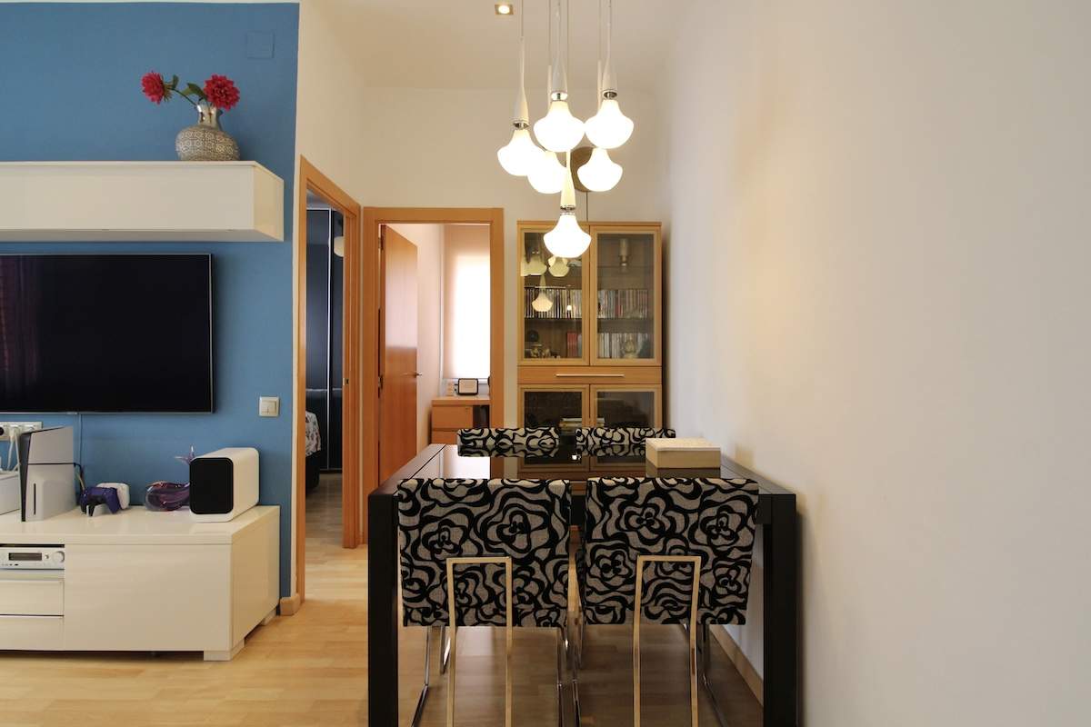 En calle Huelva, entre Selva de Mar y Treball, orientado al sureste, la luz de la mañana entra y acompaña el ritmo de este hogar.