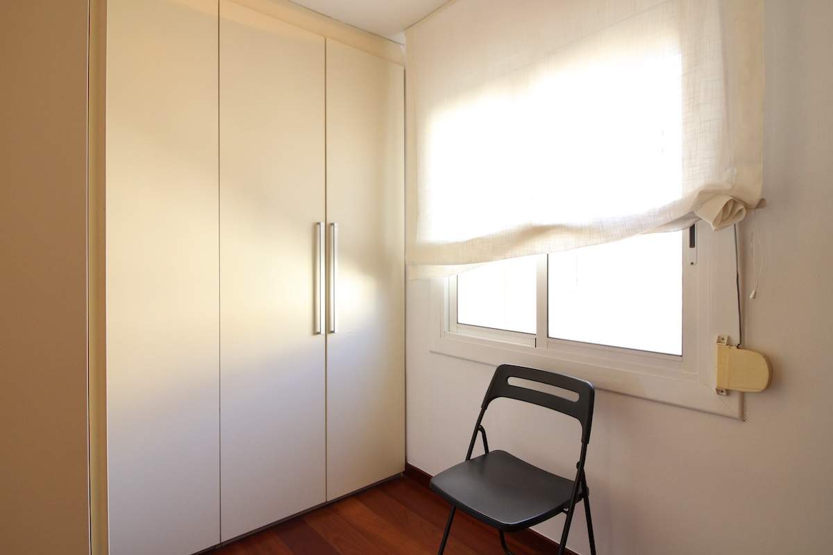 La distribución es cómoda y clara. Al entrar, un recibidor amplio da paso, a mano derecha, a una cocina cuadrada y generosa, con muebles a ambos lados y muy bien iluminada. A mano izquierda encontramos una de las habitaciones dobles, orientada al sur. De frente, el salón-comedor, luminoso y con salida a un balcón coqueto donde disfrutar del sol.